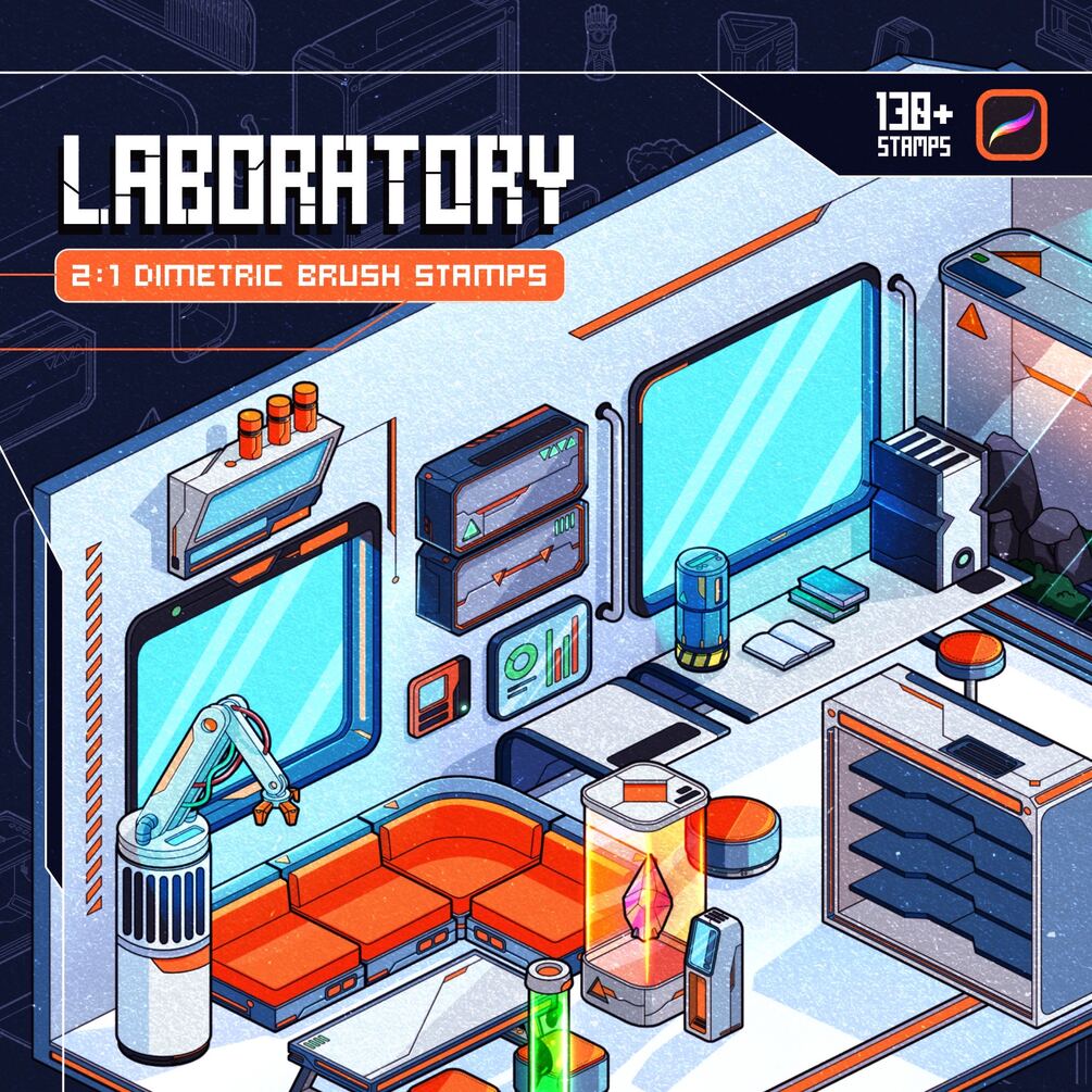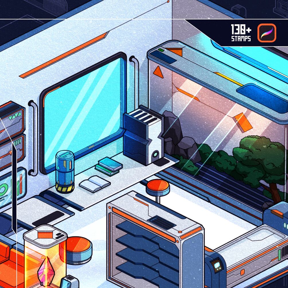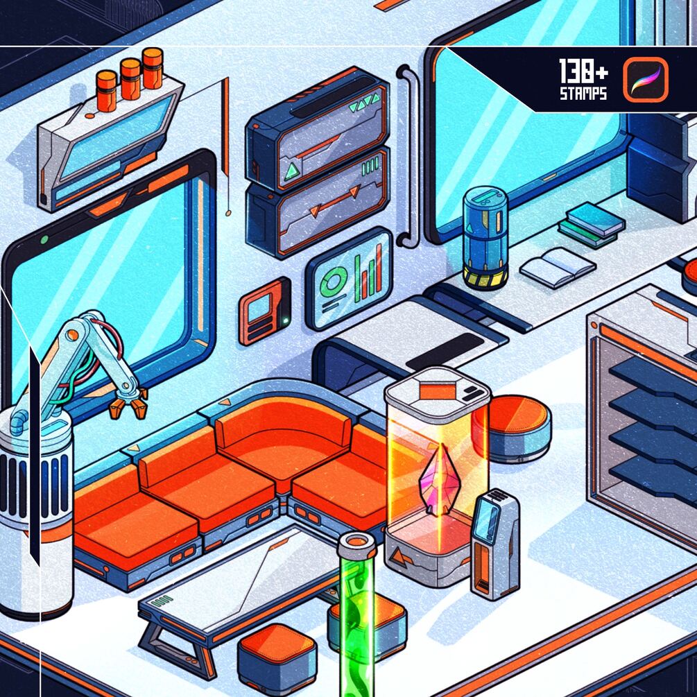 130 Futuristic Lab Procreate Brush Stamp | 2:1 Dimetric Brush | Laboratory Interior Procreate Brush | Digital Download