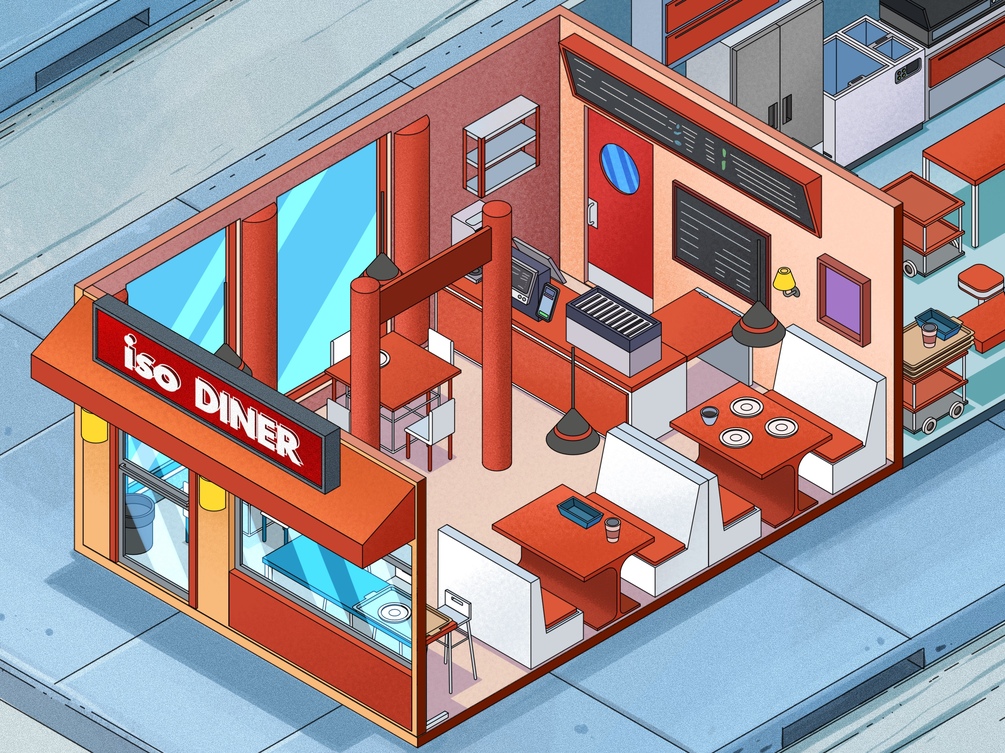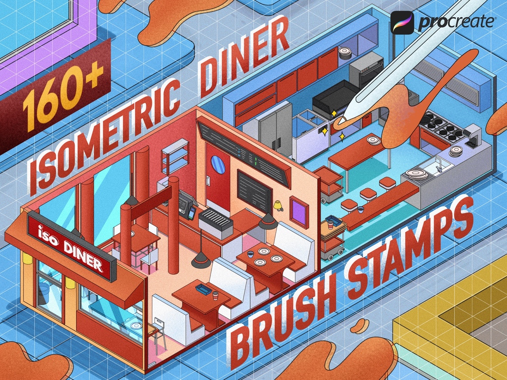 Introducing our Isometric Brush Stamps for Procreate, the ultimate digital toolkit for creating charming diner and restaurant scenes right at your fingertips! Transform your Procreate canvas into a bustling eatery with ease using our meticulously crafted isometric brushes.