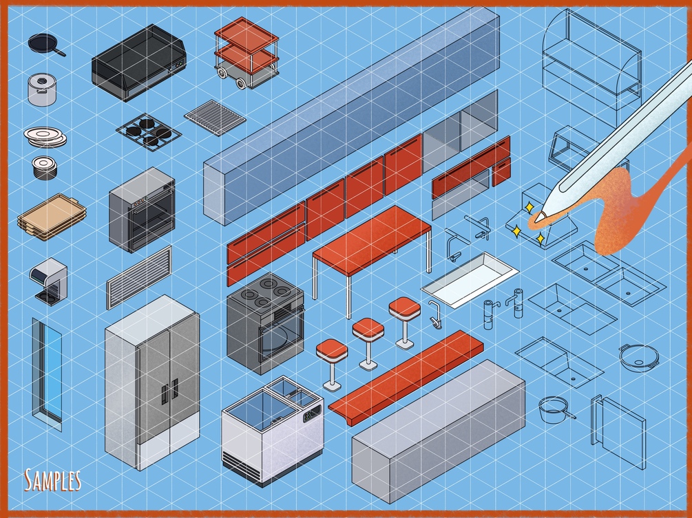 160+ Isometric Diner / Restaurant / Kitchen Brush Stamps for Procreate | Procreate Brush Kit | Interior Design Assets